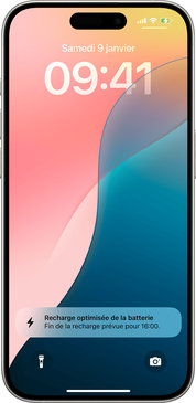 La recharge optimisée est une fonction qui ralentit le vieillissement de la batterie. Lorsqu’elle est activée, l’iPhone observe vos habitudes quotidiennes et adapte la recharge en conséquence. Une fois environ 80 % atteints, le processus s’interrompt temporairement et reprend plus tard afin que le téléphone soit entièrement prêt au moment où vous le débranchez habituellement du chargeur. Ainsi, la batterie passe moins de temps à pleine capacité, ce qui lui est bénéfique. L’écran verrouillé affiche également une estimation de l’heure à laquelle la recharge sera terminée. Si vous avez besoin d’une charge complète plus tôt, vous pouvez la lancer manuellement directement depuis la notification.